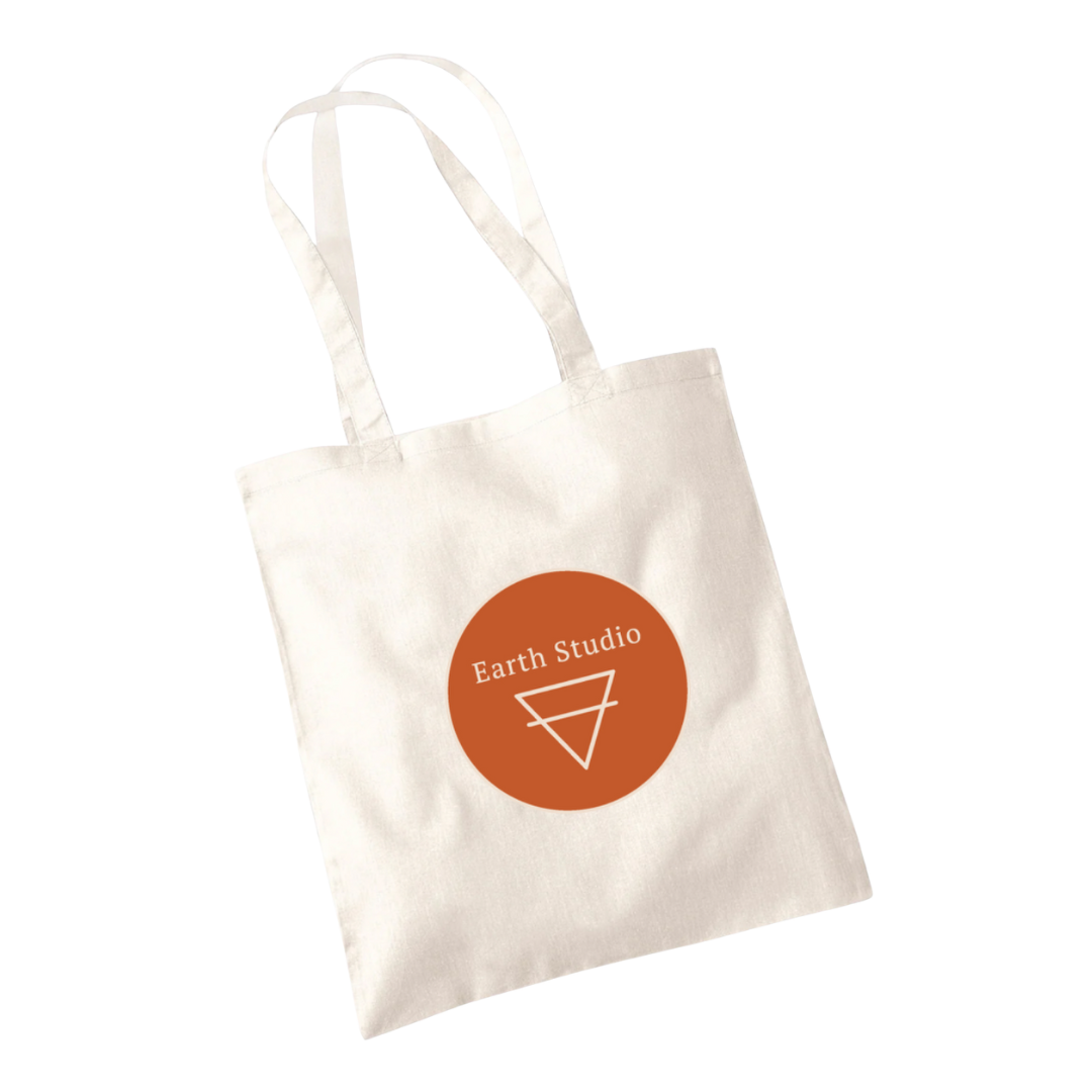 Durable canvas tote with Earth Studio branding.